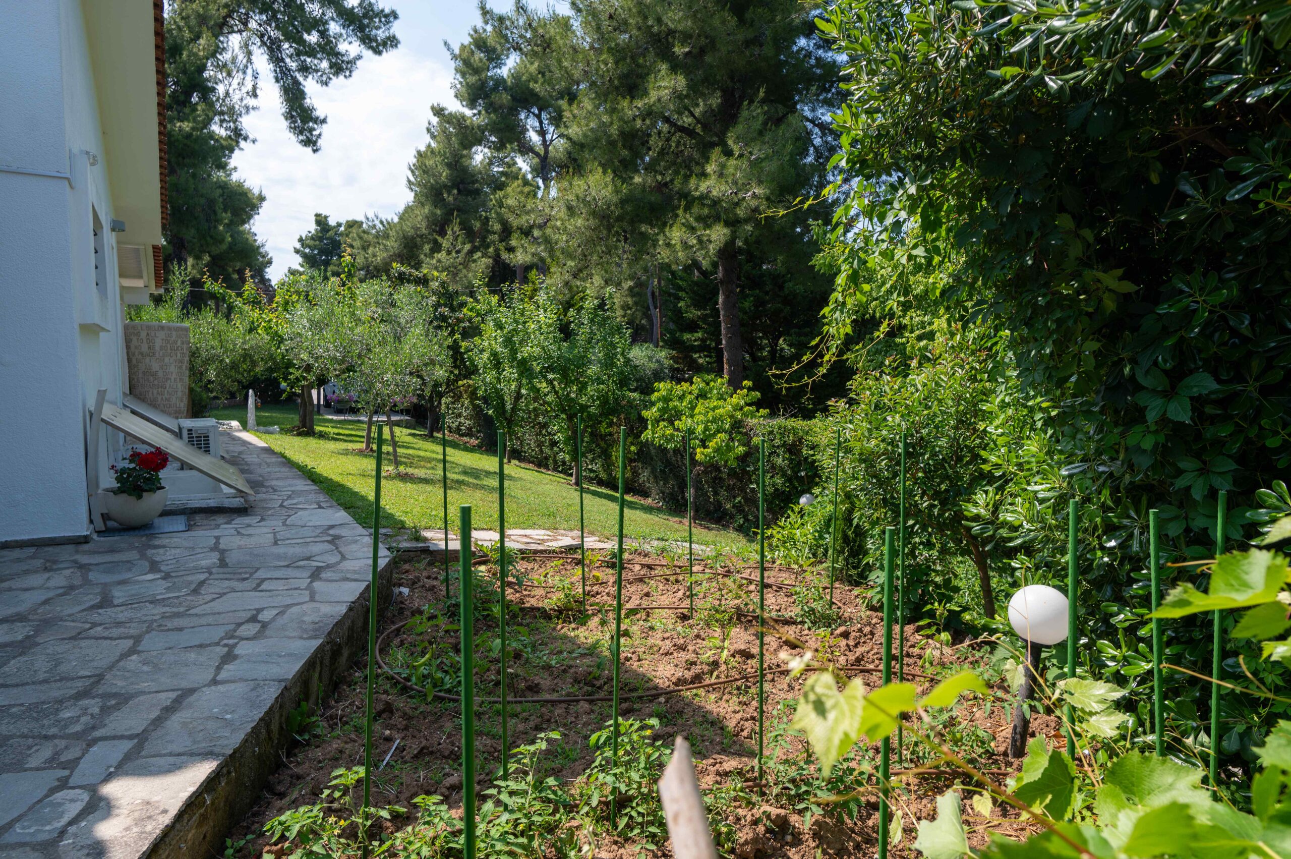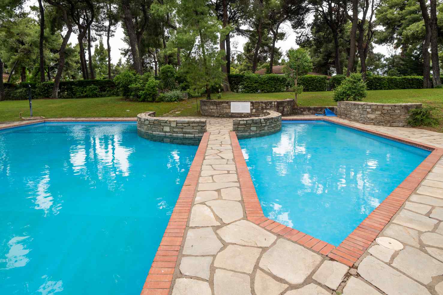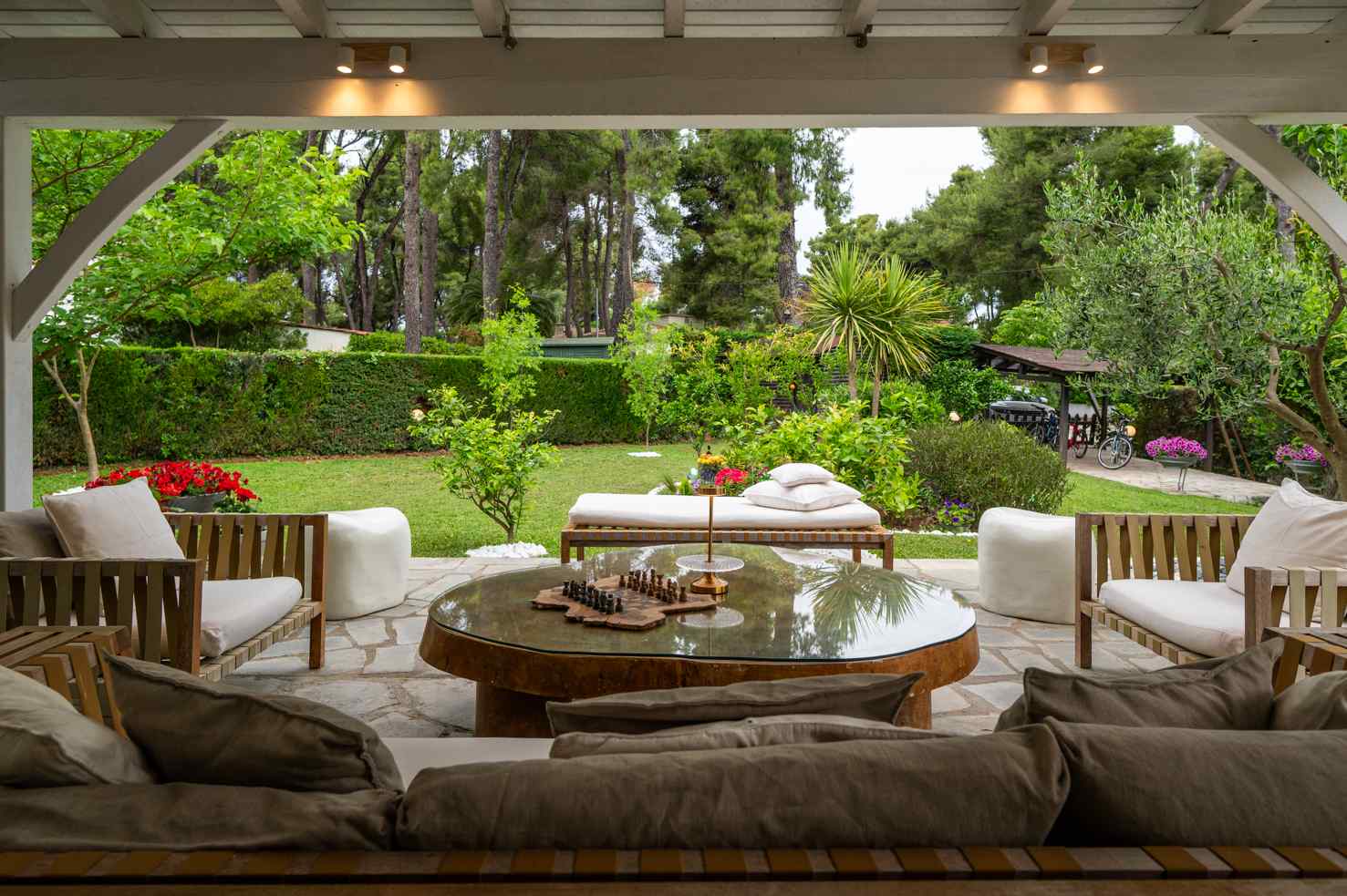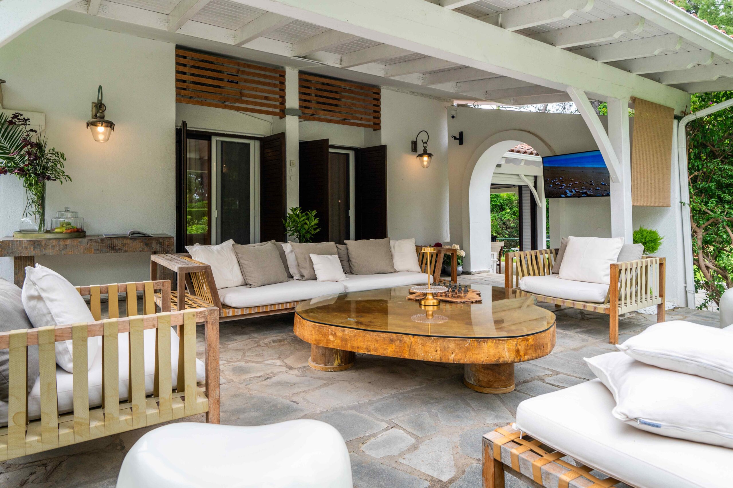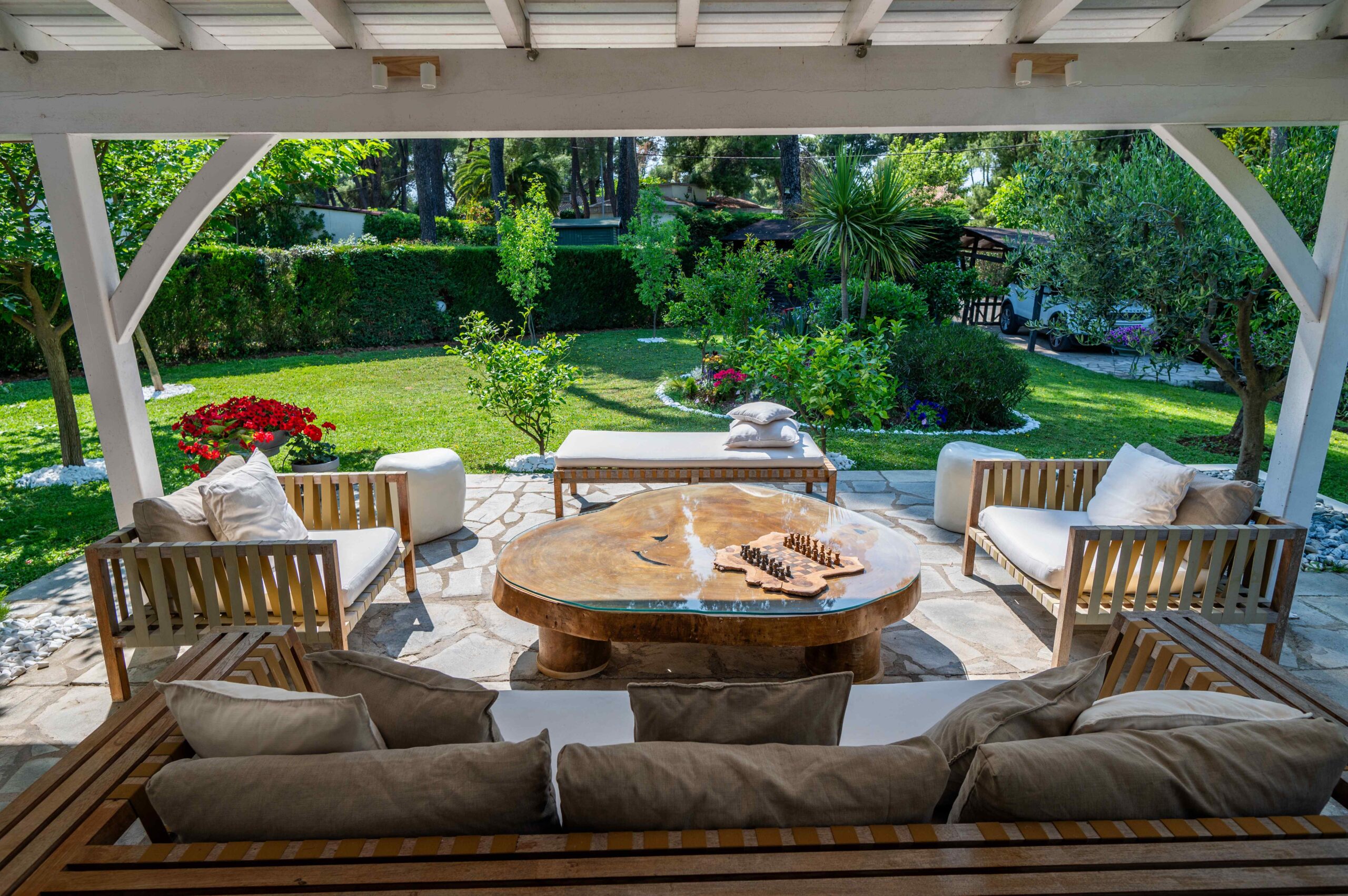 Nestled within the serene Stavronikita Vacation Home Community, Sani Elite Villa offers a peaceful escape in the heart of nature. Surrounded by lush pine forests, tall trees, and vibrant greenery, this tranquil setting provides the perfect backdrop for relaxation and privacy.