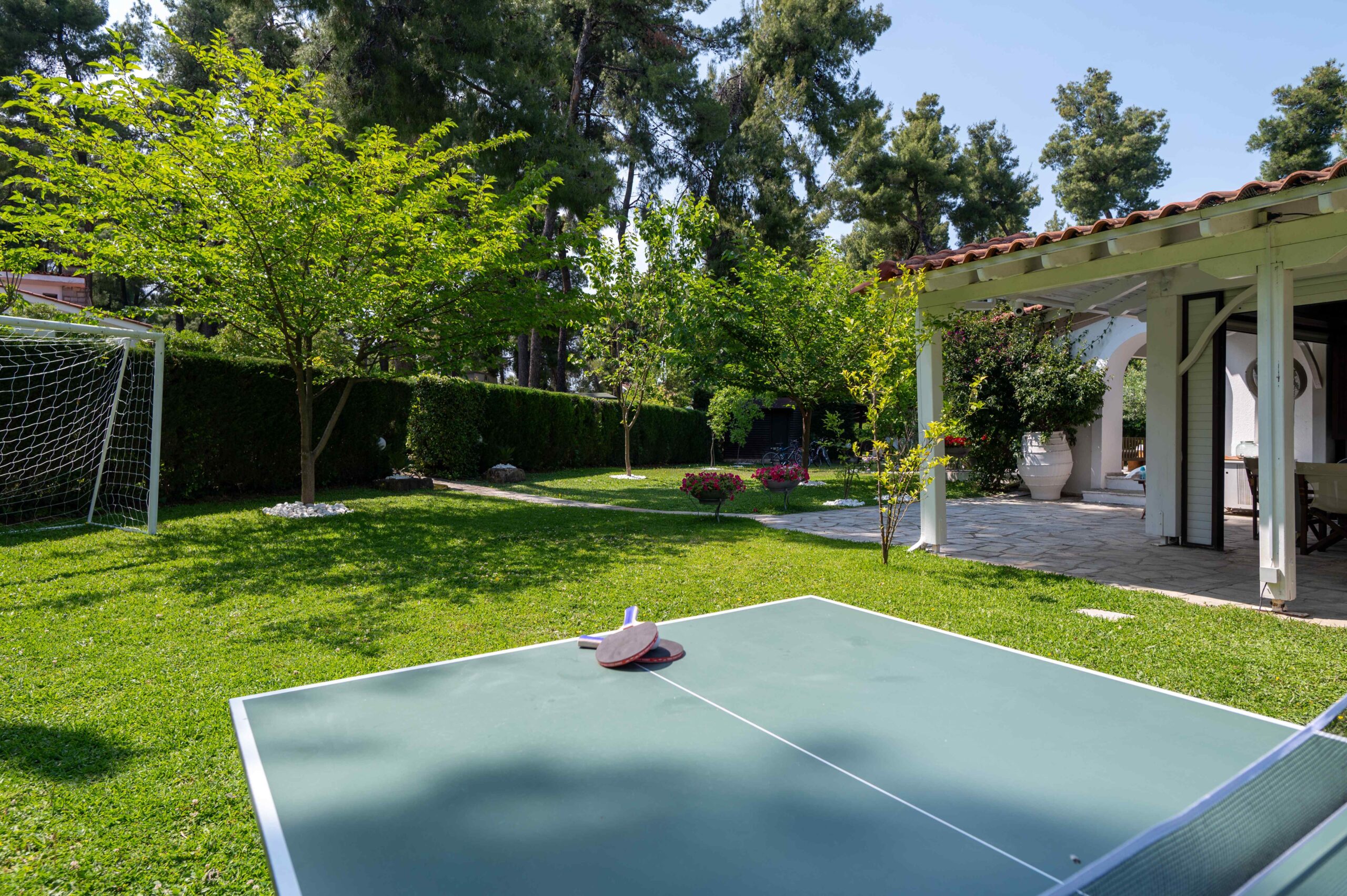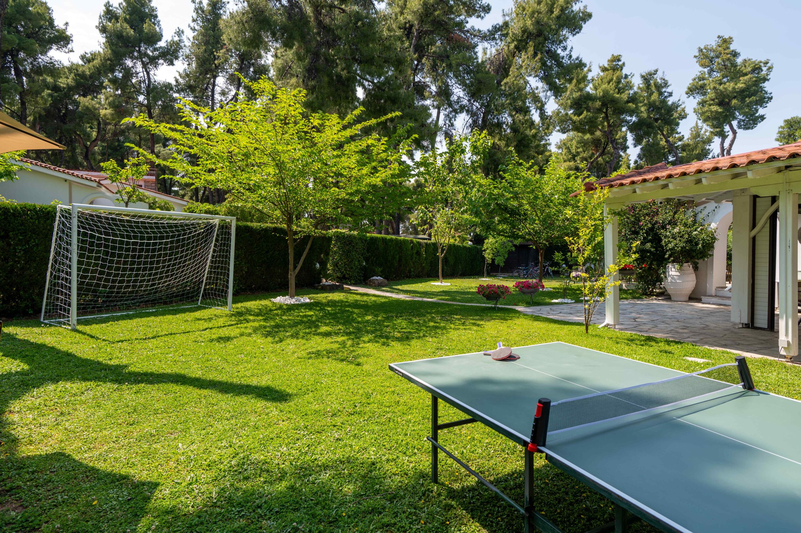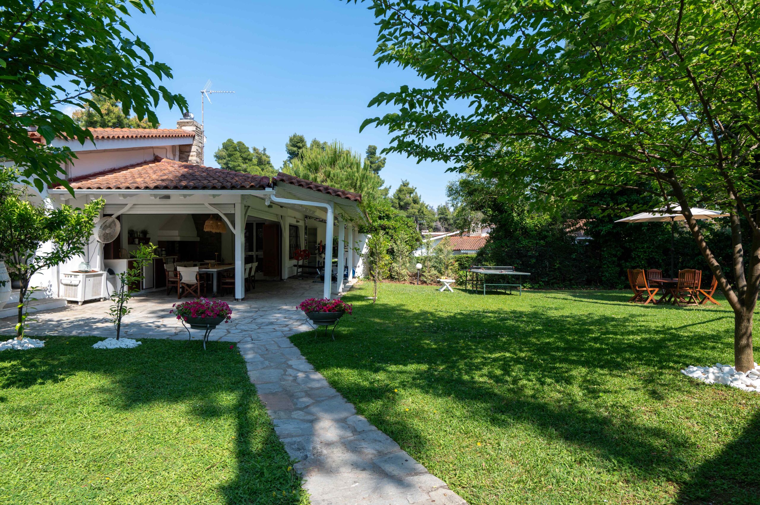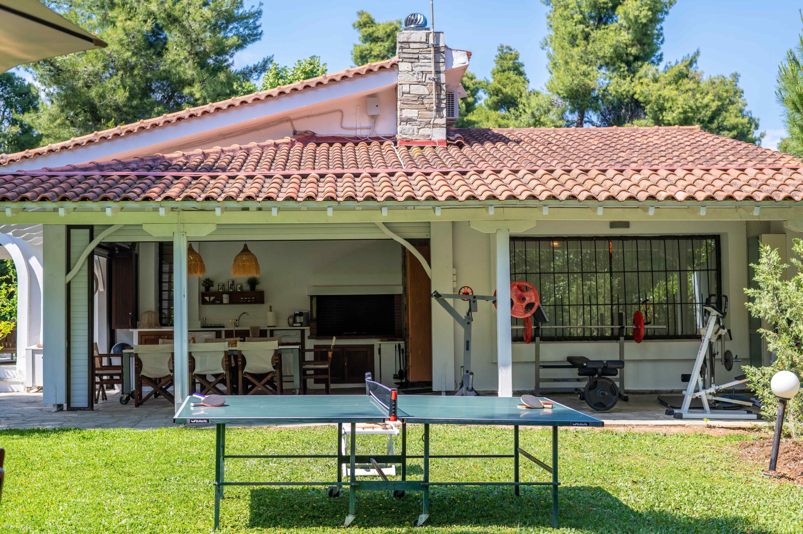 Nestled within the serene Stavronikita Vacation Home Community, Sani Elite Villa offers a peaceful escape in the heart of nature. Surrounded by lush pine forests, tall trees, and vibrant greenery, this tranquil setting provides the perfect backdrop for relaxation and privacy.