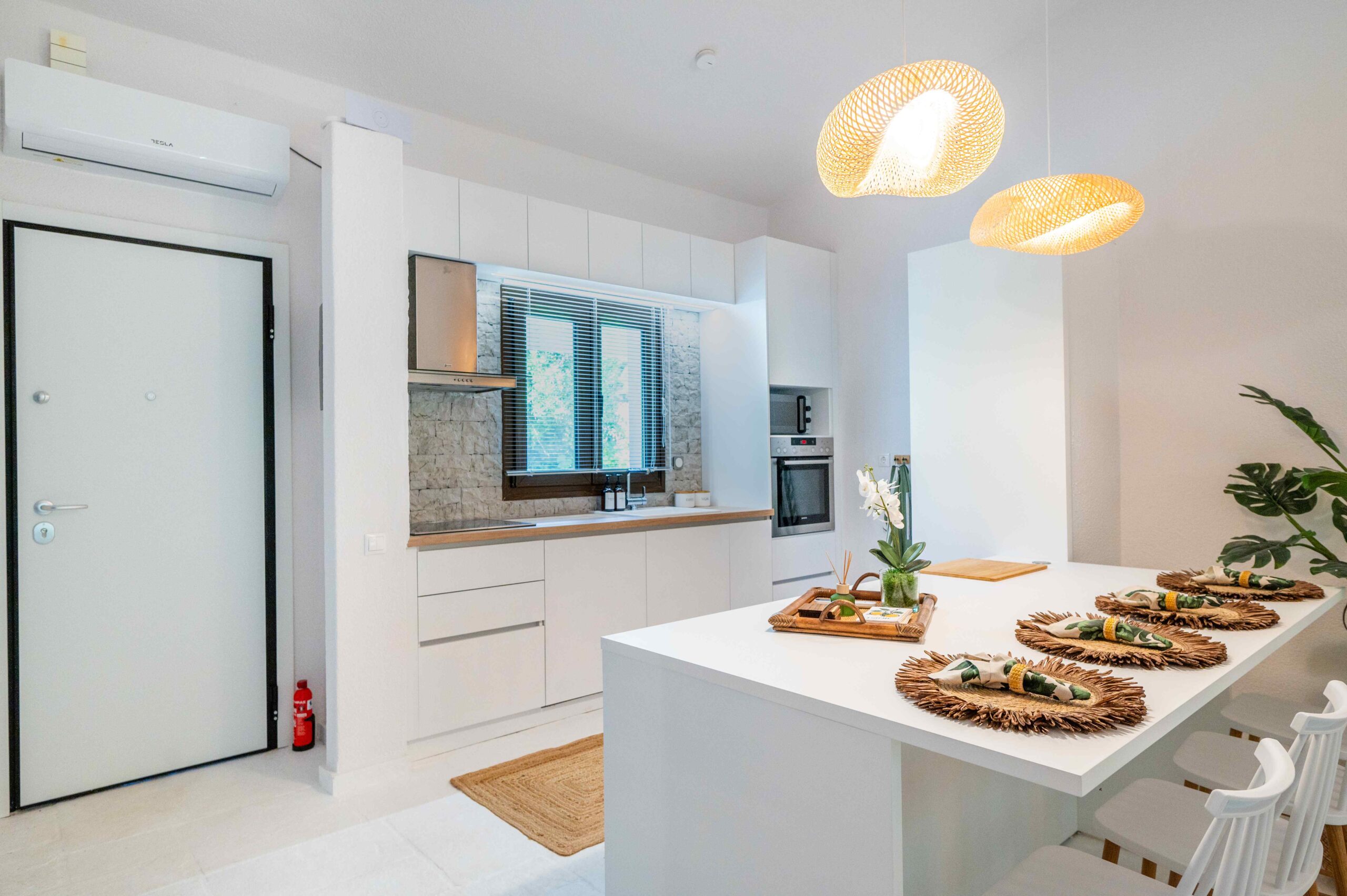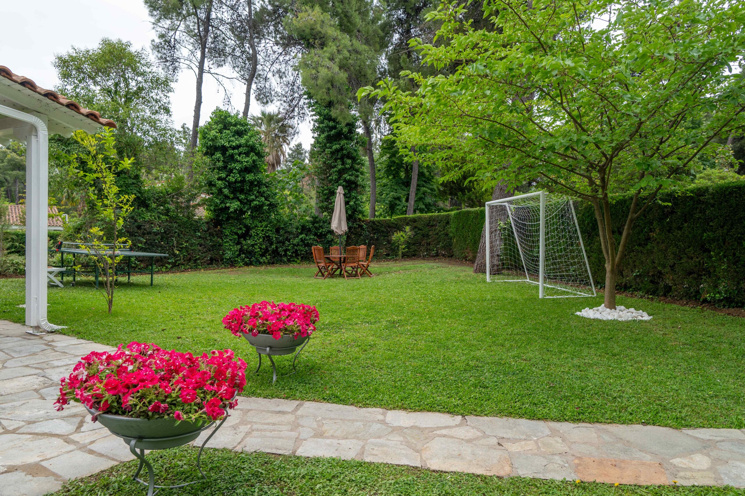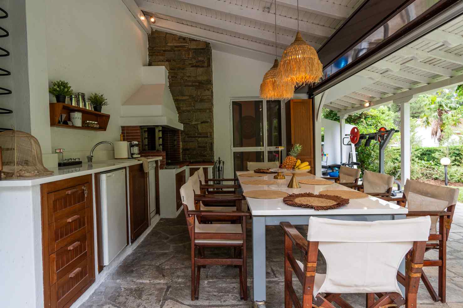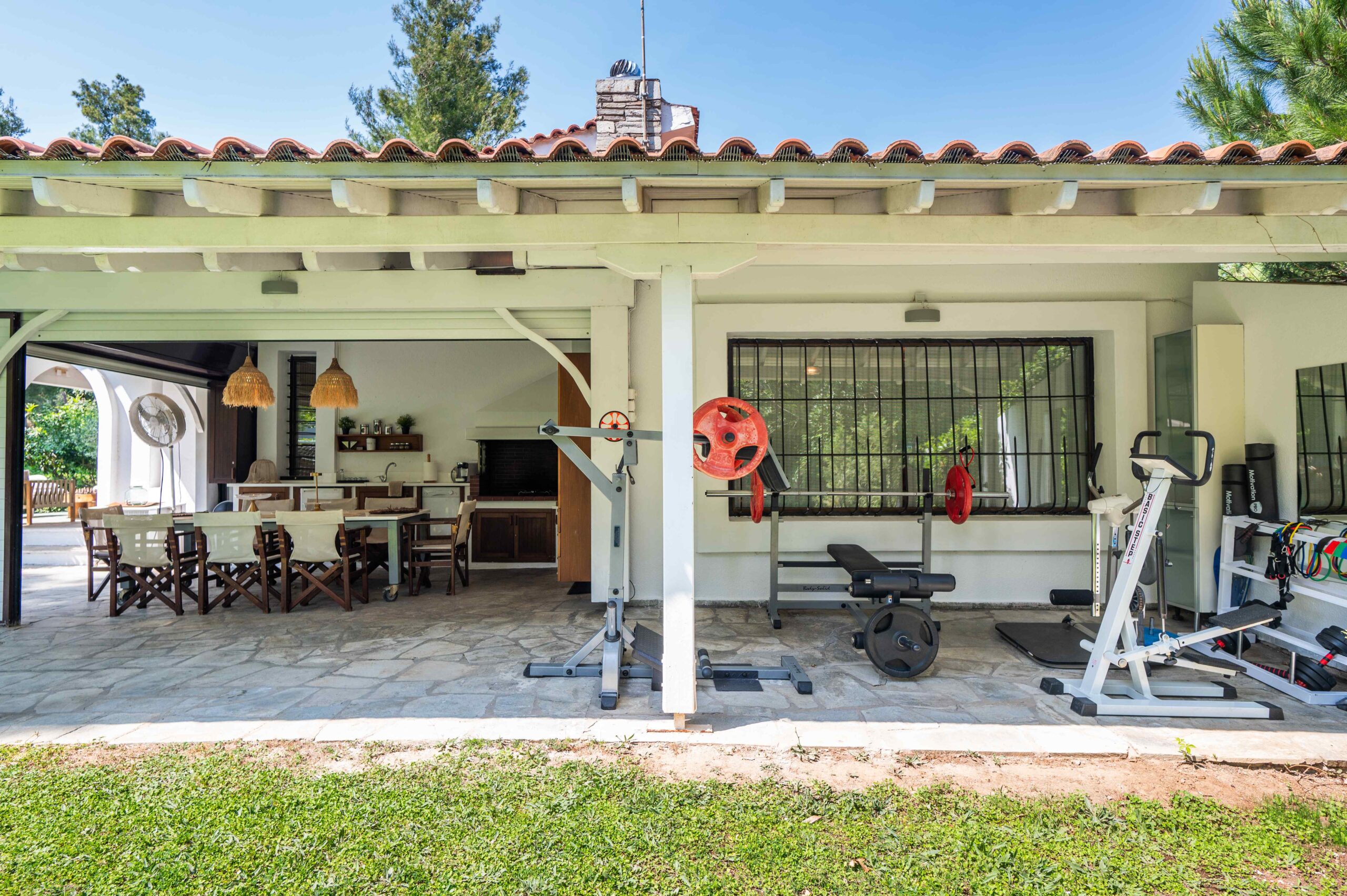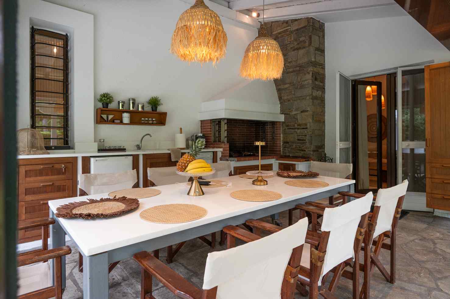 Nestled within the serene Stavronikita Vacation Home Community, Sani Elite Villa offers a peaceful escape in the heart of nature. Surrounded by lush pine forests, tall trees, and vibrant greenery, this tranquil setting provides the perfect backdrop for relaxation and privacy.